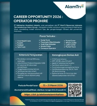 - Pengalaman mengoperasikan unit minimal 2 tahun diposisi yang dilamar