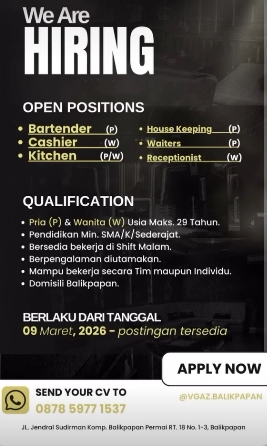 Send your CV to : 087859771537 / ig : @VGAZ.BALIKPAPAN